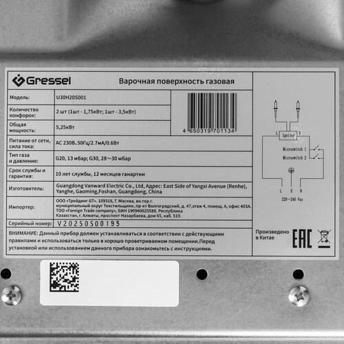 Газовая варочная поверхность Gressel RU30H20S77001 [9256883]