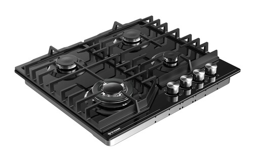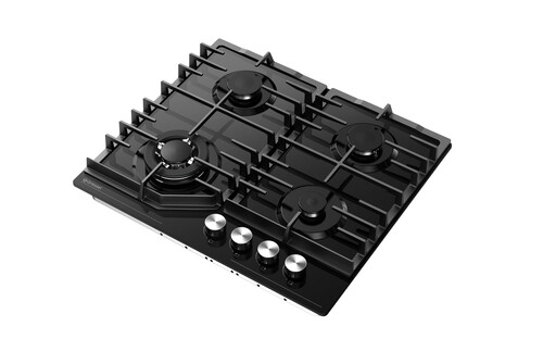 конфорок - 4 шт, решетки - чугун, панель - закаленное стекло, электроподжиг, газ-контроль, черный