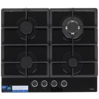 конфорок - 4 шт, решетки - чугун, панель - закаленное стекло, электроподжиг, газ-контроль, черный