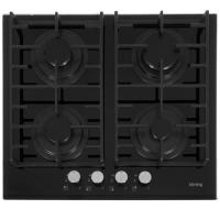 конфорок - 4 шт, решетки - чугун, панель - закаленное стекло, электроподжиг, газ-контроль, черный