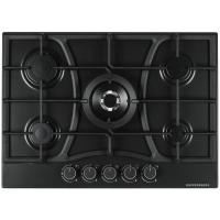 конфорок - 5 шт, решетки - чугун, панель - эмалированная сталь, электроподжиг, газ-контроль, черный