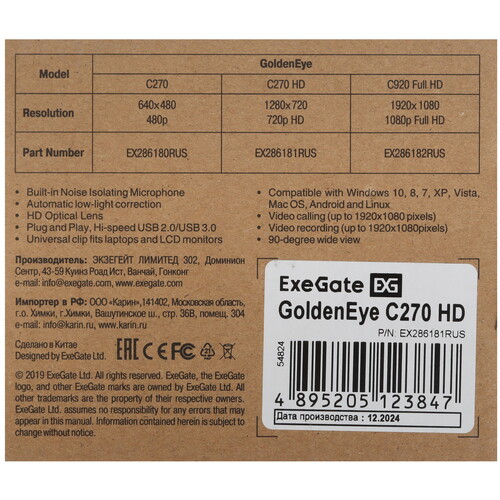Веб-камера ExeGate GoldenEye C270 HD [5365761]