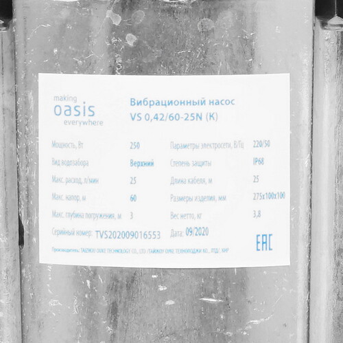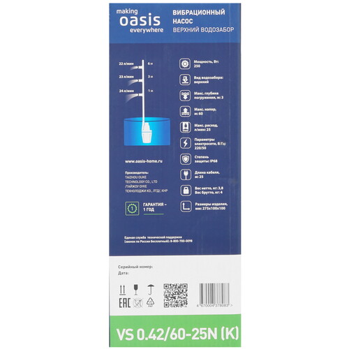 Вибрационный насос Oasis VS 0.42/60-25N [5300059]