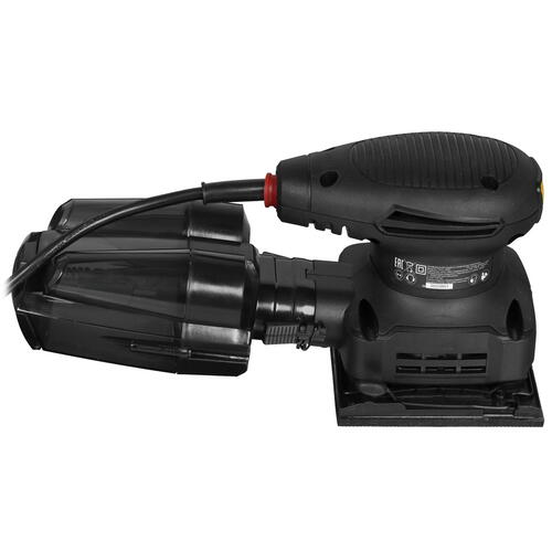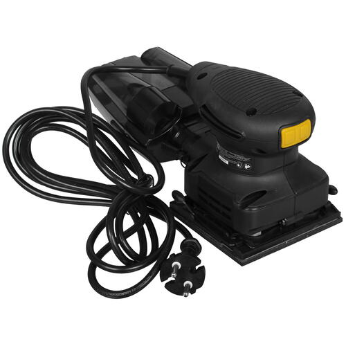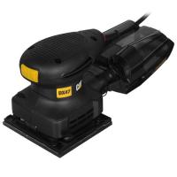 Прямоугольная подошва виброшлифмашины CAT DX47 оснащена специальными зажимами, при помощи которой на ней фиксируется лист шлифовальной бумаги. С данной моделью можно использовать оснастку размером 110x103 мм. Благодаря пылесборнику пыль, возникающая в процессе шлифовки, собирается в специальный контейнер, не оседая на окружающие поверхности. Функционирует устройство от обычной электросети, к которой оно подключается при помощи трехметрового кабеля.