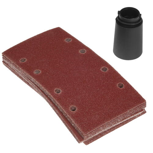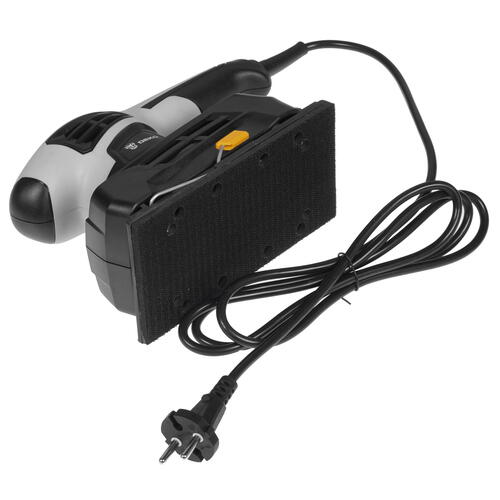 Прибор DEKO DKS300 с прямоугольной виброшлифовальной плитой (18.7x9 см) фиксирует оснастку с помощью надежного зажима. Комплектация дополнена набором шлифлистов зернистости P80, P100 и P120 по 5 штук. Эффективность работы обеспечивается благодаря скорости 12000 кол/мин при амплитуде колебаний 2 мм.