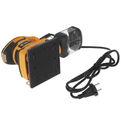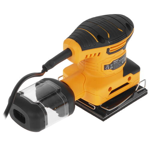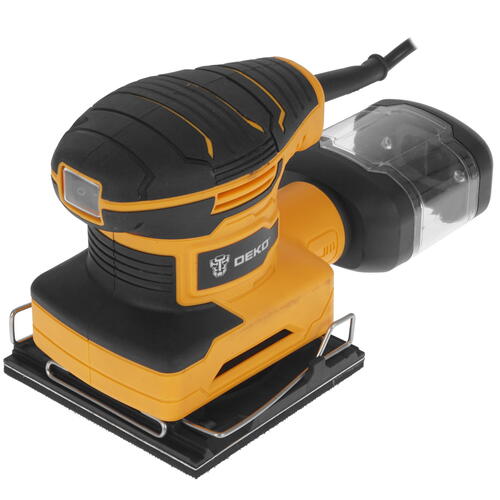 Для крепления шлифбумаги к подошве DEKO DKS400 используются зажимы. Особенность инструмента в возможности присоединения контейнера для сбора мусора и пыли. Благодаря этому вы сможете поддерживать чистоту рабочего места.