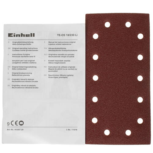 Виброшлифмашина Einhell TE-OS 18/230 Li- Solo – аккумуляторный инструмент с алюминиевой подошвой, предназначенный для эффективного выполнения шлифовальных и полировальных работ. Благодаря функции электронной регулировки скорости в пределах 11000-22000 кол/мин можно настраивать интенсивность воздействия в зависимости от конкретного материала. В качестве оснастки подходят абразивная бумага на микрокрючке или петле и наждачная бумага на липучке. Для повышения комфорта при выполнении работ реализована система отведения пыли. Рукоятка с мягкими вставками гарантирует комфортное удержание инструмента без выскальзывания. Einhell TE-OS 18/230 поставляется без аккумулятора и имеет в комплекте 3 шлифовальных листа.