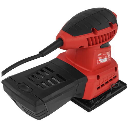 Виброшлифовальная машина Elitech МШВ 0211 подходит для зачистки и шлифовки ровных поверхностей большой площади. В конструкции шлифмашины предусмотрена подошва, которая совершает до 30000 колебаний в минуту с небольшой амплитудой – 2 мм. Шлифовальные листы к подошве крепятся за счет липучки (велкро-основы), поэтому удаление истертого листа и установка свежего занимают минимум времени. Допускается также крепление листов на зажимы. Подошву приводит в движение щеточный электромотор с питанием от однофазной сети 220 В. Для подключения к розетке используется морозоустойчивый кабель длиной 3 м.