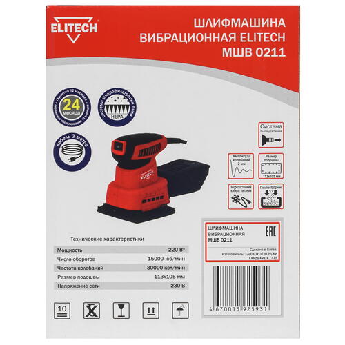 Виброшлифовальная машина Elitech МШВ 0211 [1069128]