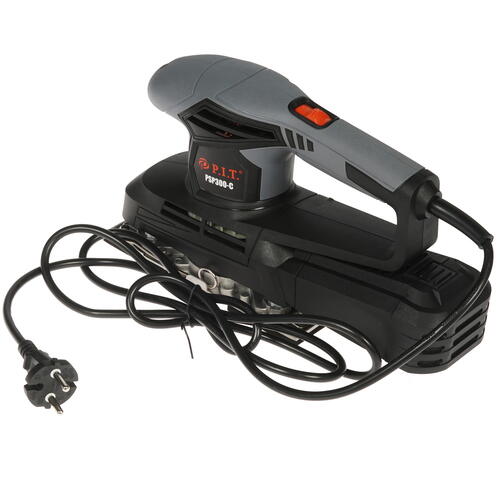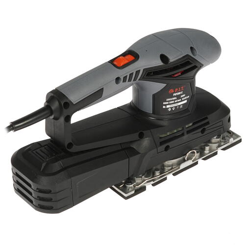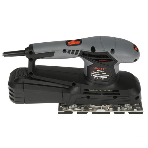 Виброшлифмашина PIT PSP300-C с питанием от сети 220 В и мощностью электропривода 300 Вт демонстрирует высокую эффективность шлифования плоских поверхностей любой площади. Опорная подошва этой модели присоединяется к корпусу электроинструмента при помощи 4 резиновых стоек, что способствует значительному снижению передаваемых на корпус шлифмашины вибраций. Прямоугольная подошва инструмента имеет длину 187 мм при ширине 90 мм и оснащается зажимом, благодаря которому обеспечивается фиксация листа шлифовальной бумаги.