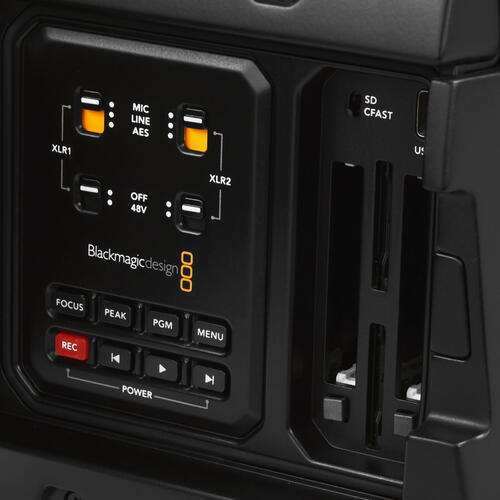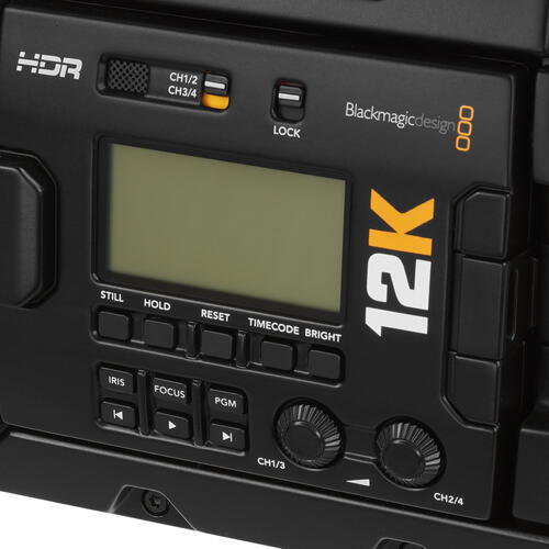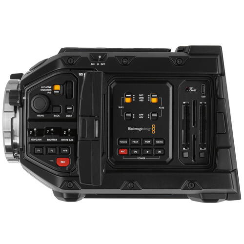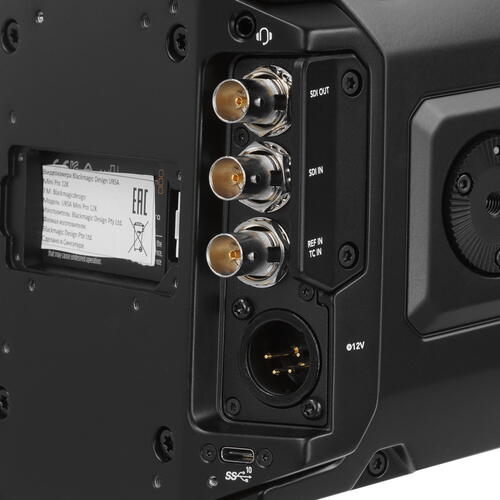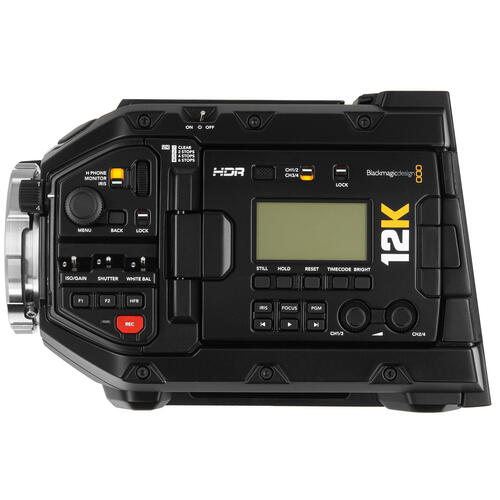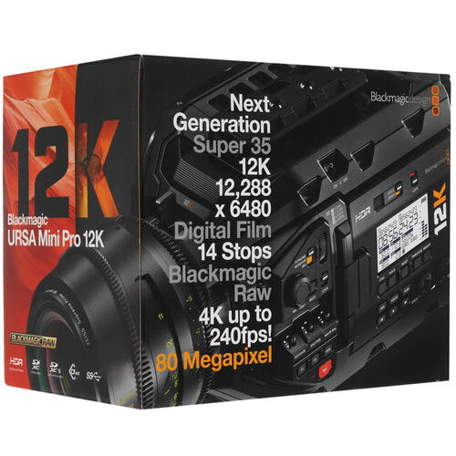 Видеокамера Blackmagic Design URSA Mini Pro 12K оборудована CMOS-матрицей типоразмера Super 35 (27.03x14.25 мм) для записи видео в разрешении до 12288х6480 пикселей. В устройстве предусмотрен встроенный микрофон для двухканальной звукозаписи, также имеется возможность подключения внешнего микрофона для повышения качества записываемого звука. Модель оснащена 4-дюймовым сенсорным дисплеем для просмотра отснятого материала и настройки параметров работы.