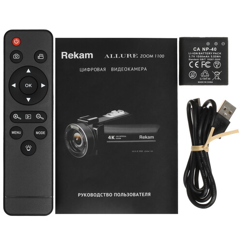 Система автоматической фокусировки обеспечивает резкость изображения. Цифровая стабилизация предотвращает размытие кадра от дрожания рук. Микрофон и динамик интегрированы в видеокамеру Rekam ALLURE Zoom 1100. Для контроля съемки и просмотра материала установлен экран с диагональю 3 дюйма. Возможности подключения представлены видеовыходом HDMI, портом USB Type-C, считывателем карт памяти SD/SDHC.