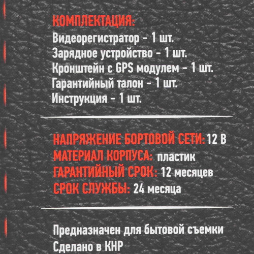 Для управления регистратором предусмотрен дисплей и ряд механических кнопок. Работа регистратора может осуществляться как в ручном, так и в автоматическом режиме за счет встроенных сенсоров и различных режимов записи. Хранение видео может осуществляться на картах памяти microSD размером до 32 ГБ. В качестве источника питания используется бортовая сеть автомобиля или аккумулятор.