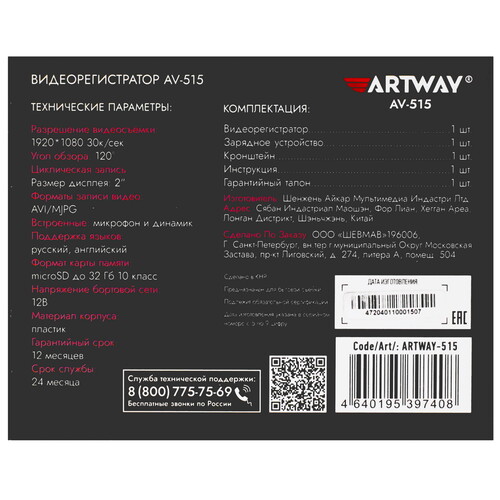 Видеорегистратор Artway AV-515 [9212064]