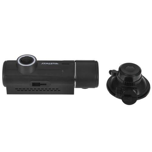 Компактный черный корпус Artway AV-537 оснащен креплением-присоской и встроенной АКБ с зарядкой от бортовой сети 12 В. Для записи данных можно использовать microSD-карты объемом до 128 ГБ. Регистратор записывает видео со звуком, указанием даты и времени, а также сохраняет важные события в отдельный файл.