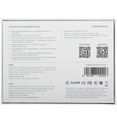 При распознавании удара активируется съемка нестираемого видео для последующего анализа. Благодаря магнитному поворотному креплению положение видеорегистратора Fujida Karma Pro Max WiFi в салоне удобно регулируется. Для просмотра отснятого материала установлен дисплей диагональю 3 дюйма. Встроенный радар-детектор способен распознавать устройства контроля движения в диапазонах K, Ka, Ku, Laser, X. Усилитель Low Noise Amplifier повышает чувствительность и дальность обнаружения радаров. Модуль Wi-Fi обеспечивает беспроводной доступ к файлам и удаленное управление видеорегистратором.
