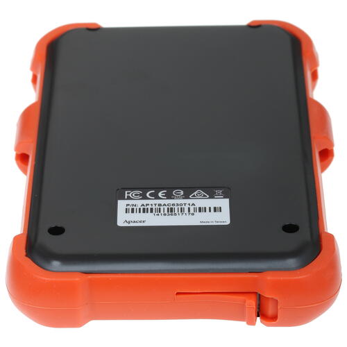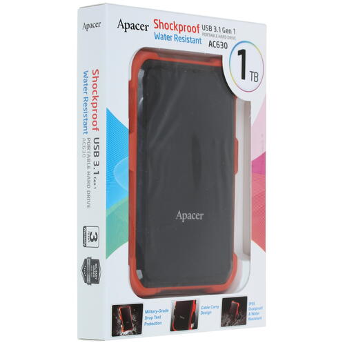 Внешний HDD Apacer AC630 [AP1TBAC630T-1] собран в корпусе, имеющем специальные накладки, обеспечивающие защиту от внешних воздействий. Модель отличается ударостойкими свойствами. Предусмотрена и защита от воздействия пыли и влаги. Корпус модели имеет длину, ширину и толщину, которые равны 143, 93 и 20 мм соответственно. Масса устройства составляет 250 г. В комплект поставки включены интерфейсный кабель и руководство по эксплуатации. Накопитель упакован в коробку, конструкция которой позволяет ознакомиться с внешним видом устройства без распаковки.