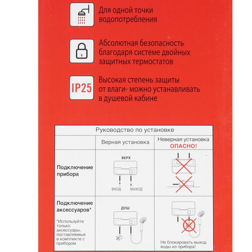 проточный, установка горизонтальная, 3.5 кВт, 55 °C, 28.9 см x 18.6 см x 10.9 см