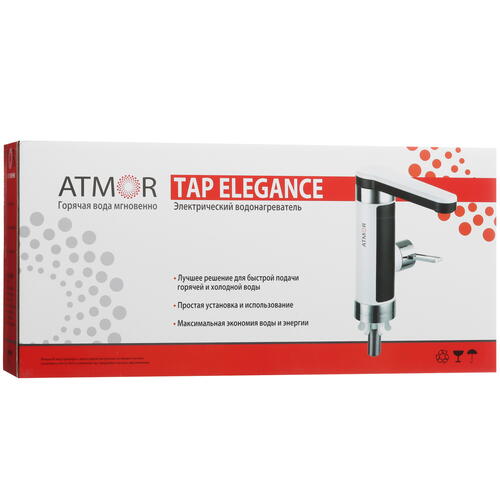 Прибор крепится непосредственно на раковину. Вода к нему подводится снизу. Прибор подает жидкость на одну точку. Конструкция прибора позволяет ему экономить и воду, и электроэнергию. Atmor TAP ELEGANCE 3 KW защищен от перегрева, поэтому будет служить долго.