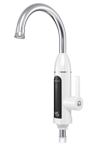 Вода в водонагревателе нагревается мгновенно, проходя через нагревательную колбу из нержавеющей стали, в которой расположен нагревательный элемент. Требуемая температура достигается регулировкой протока воды при помощи ручки прибора (снижением/повышением «напора» воды на входе). Температура водопроводной воды может значительно колебаться в течение года: от 5°С зимой до 20°С летом. Поэтому при одинаковой температуре воды на выходе поток воды зимой может быть значительно меньше, чем летом. Для предохранения от перегрева в устройстве предусмотрен термовыключатель, который отключает его от сети в случае возникновения такой ситуации.