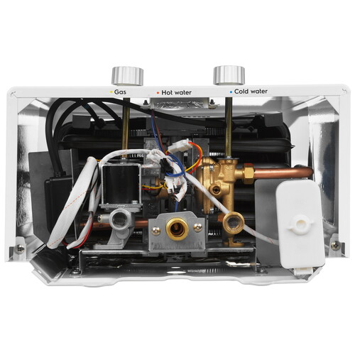 Водонагреватель газовый Ballu НС-1584730 – проточная модель с мгновенным нагревом воды в теплообменнике. Устройство подходит для прямого подключения к газопроводу и работы с давлением воды в пределах 0.15-8 атм. Производительности 10 л/мин хватает для мытья посуды и проведения гигиенических процедур.