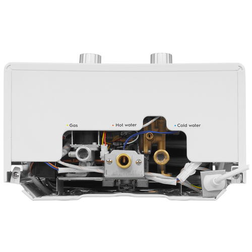 Ballu НС-1584737 с прямым подключением в газопровод стабильно работает при давлении в системе водопровода 0.15-8 атм. Устройство оснащено электронным розжигом, газ-контролем и встроенной защитой от перегрева. Крепежные элементы для настенного монтажа включены в комплект.