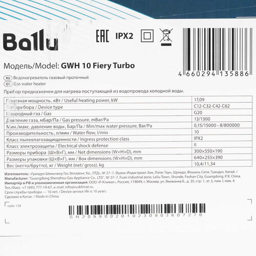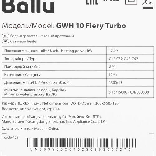 Водонагреватель газовый Ballu НС-1584737 [9087293]