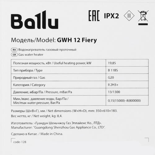 Водонагреватель газовый Ballu НС-1584740 [9087295]