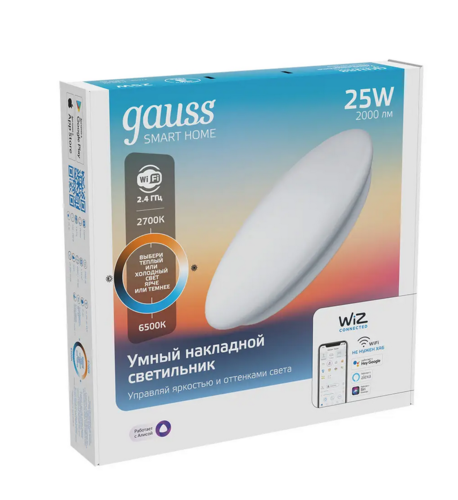 Умный Wi-fi светильник Gauss Smart Light ССТ DIM 35 Вт 2700-6500K.. Светильник накладной, так что установить его самостоятельно не составит труда. Легко коннектит со смартфоном. Управляется через мобильное приложение или голосовым помощником. Отлично ладит как с Алисой, так и с Марусей, не отказывается слушаться и остальных голосовых помощников, очень коммуникабелен. Светильник также обладает функцией диммирования, то есть может изменять температуру освещения. Расписание и температура: задайте расписание и свет будет включаться в заданное время и в выбранной вами температуре свечения.
