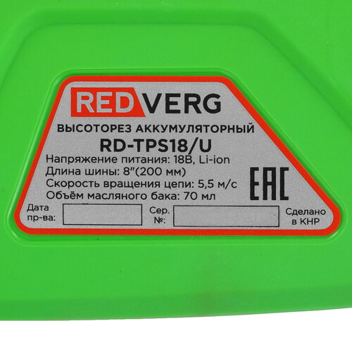 Инструмент совместим с аккумуляторами REDVERG UNIMAX 18/36.
