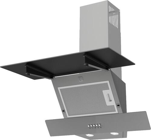 Наклонная вытяжка с фасадом из серого стекла значительно сэкономит пространство на кухне. Главным преимуществом данной вытяжки является регулировка угла наклона устройства. Это позволяет подобрать оптимальный уровень очищения воздуха в помещении. Еще один плюс – высокая производительность при низком уровне шума и эргономичности. Легкое и понятное кнопочное управление с 3 режимами работы регулирует скорость устройства. Встроенные светильники дают хорошее освещение варочной поверхности стола. А благодаря 3-х слойному алюминиевому фильтру, который защищает детали от попадания жира и влаги, устройство прослужит Вам долгие годы.