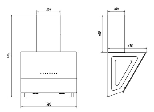 стекло, 784 м³/ч, 265 Вт, режимы - отвод/циркуляция, ширина - 59.5 см