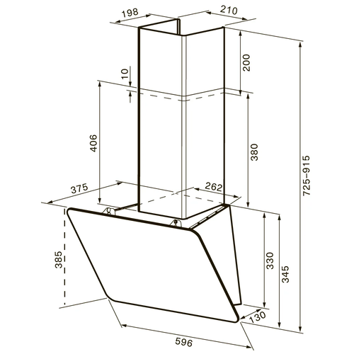 стекло, 850 м³/ч, 62 Вт, режимы - отвод/циркуляция, ширина - 59.6 см