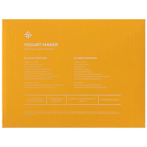 На корпусе DEXP YM-180 есть кнопка включения с ярким индикатором. Устройство работает в 1 оптимальном режиме для приготовления йогурта. Модель без таймера дополнена системой автоотключения при перегреве. Длины кабеля 80 см хватает для подключения йогуртницы к розетке недалеко от кухонного стола.