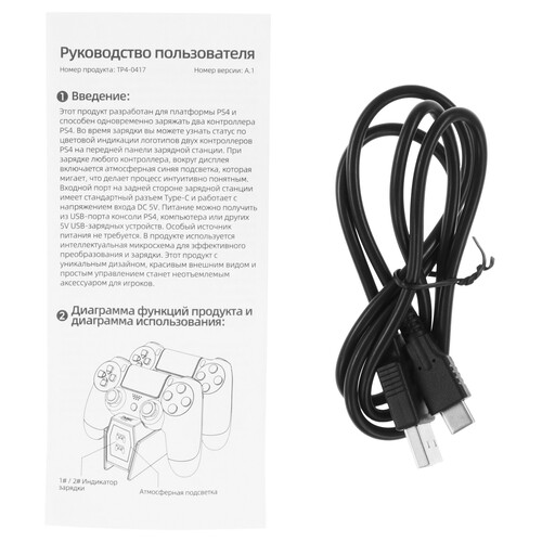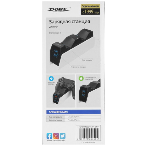 Зарядная станция DOBE TP4-0417 предназначена для геймпадов приставки PlayStation DualShock 4. ЗУ оснащено защитой от короткого замыкания, разъемом USB Type-C и съемным кабелем. Станция позволяет одновременно заряжать 2 геймпада.