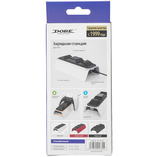 Зарядная станция DOBE TP5-0521B предназначена для геймпадов приставки PlayStation DualSense. ЗУ оснащено LED-индикатором заряда, разъемом USB Type-C и съемным кабелем. Станция позволяет одновременно заряжать 2 геймпада.
