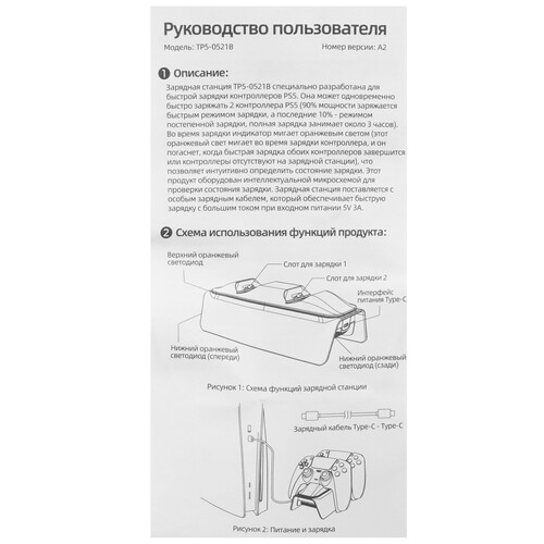 для PlayStation DualSense, ток на порт - 2000 мА, одновременно заряжаемых геймпадов - 2 шт