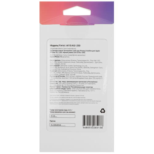 Стекло Aceline формата 2.5D с аккуратной черной рамкой подходит для устройства Apple iPhone 15. Стекло смягчает удары, защищает экран от царапин и потертостей. При повреждении аксессуар не вызывает сложностей в замене. Модель-антишпион со специальным покрытием не дает окружающим видеть информацию на экране.