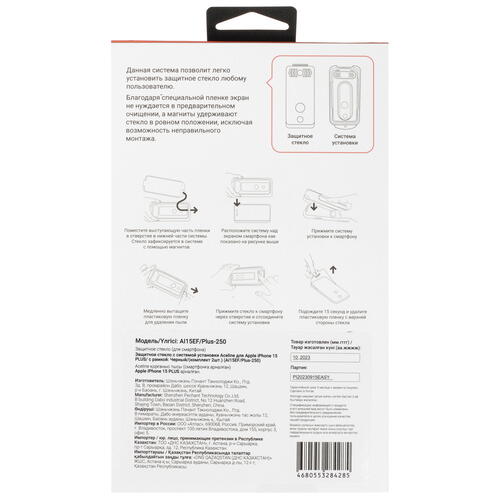 Защитное стекло Aceline для экрана Apple iPhone 15 Plus полностью закрывает оригинальный дисплей. Олеофобное покрытие облегчает очистку стекла от брызг, отпечатков пальцев и прочих загрязнений.