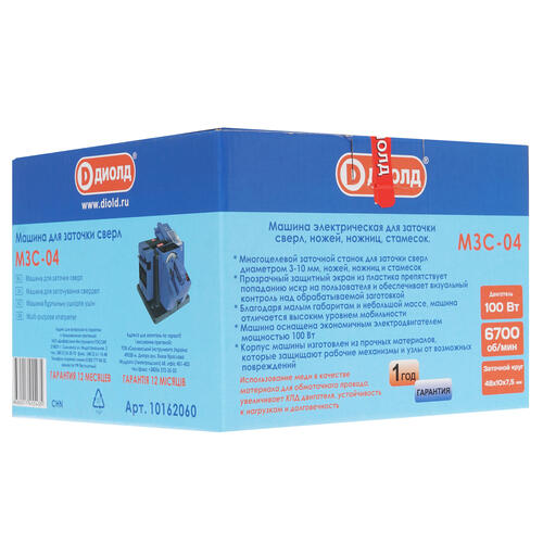 Точильный станок Диолд МЗС-04 − компактное приспособление с весом 0.95 кг, которое предназначено для заточки различных инструментов. Небольшой вес и размеры делают станок мобильным. Он позволяет затачивать сверла с диаметром от 3 мм до 10 мм, стамески, ножницы и ножи.
