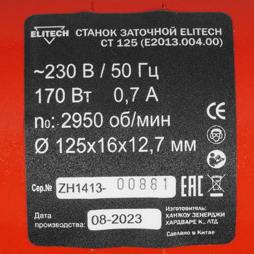 170 Вт, 2950 об/мин, круг - 125 мм х 16 мм, 4.2 кг