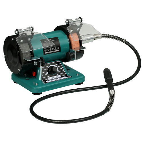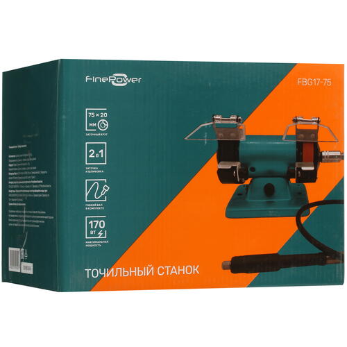 Точильный станок FinePower FBG17-75 с двумя точильными кругами диаметром 75 мм применяется для заточки различного режущего инструмента – сверл, стамесок, зубил, лезвий, ножей и ножниц. Гибкий вал используется для передачи крутящего момента и помогает добиться частоты вращения 8500 об/мин. Для защиты пользователя от искр и отходов в процессе заточки предусмотрены прозрачные откидные щитки. Корпус станка FinePower FBG17-75 отличается прочностью и стойкостью к неблагоприятным внешним воздействиям. На основании расположены ножки, которые гарантируют фиксацию на поверхности.