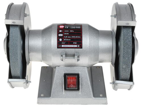 Точильный станок Калибр ТЭ-150/300 будет полезен мастерам, использующим режущий инструмент, требующий заточки режущей кромки. Установлены 2 точильных камня с одинаковыми параметрами: диаметр – 150 мм, толщина – 16 мм. Смена оснащения представляет из себя простую операцию. Безопасность обеспечивается благодаря наличию защитных экранов.